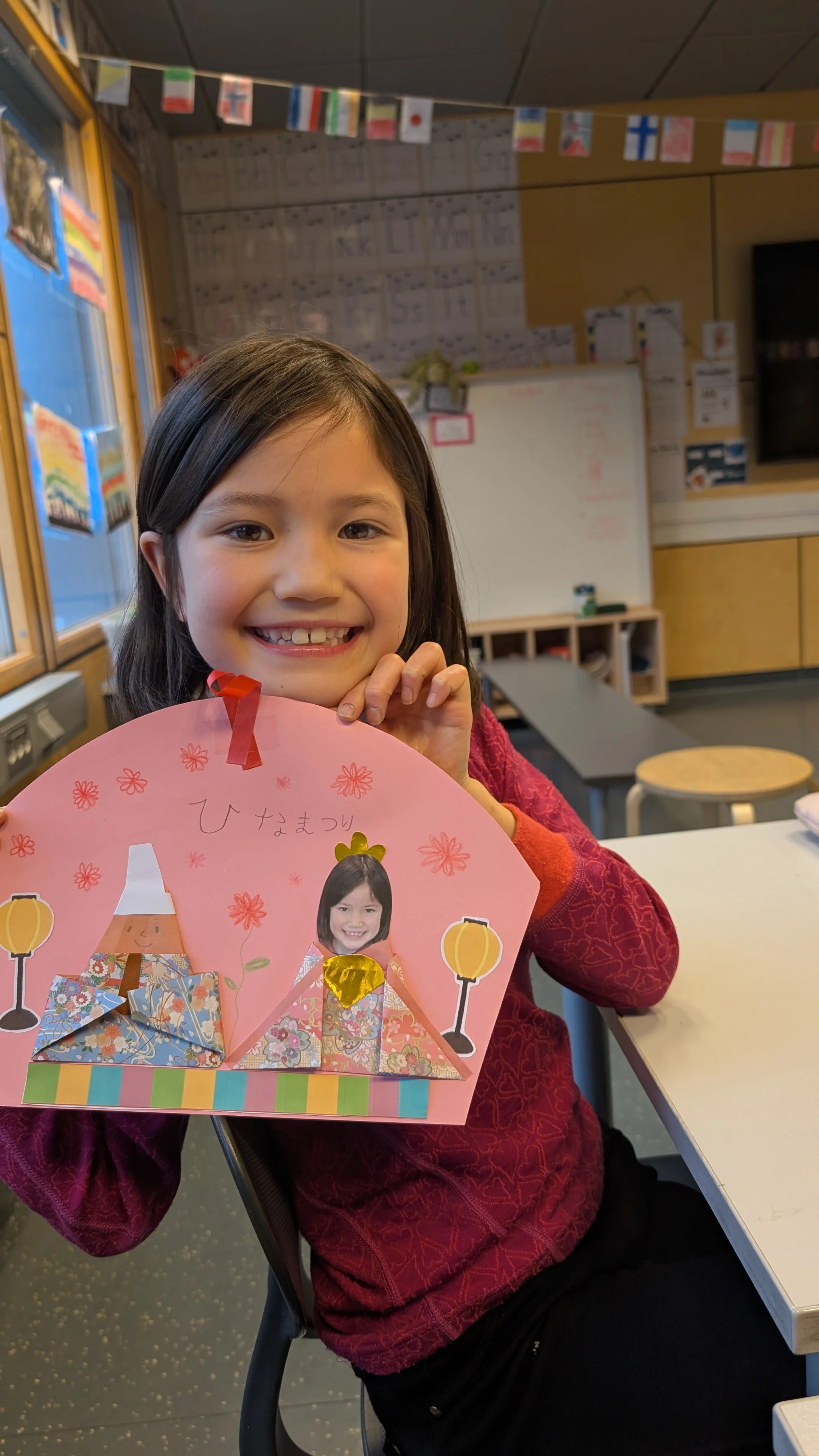 We made Hinaningyo out of origami and added some touches to the princess and prince using paper and colored pencils. How cute it is!!
