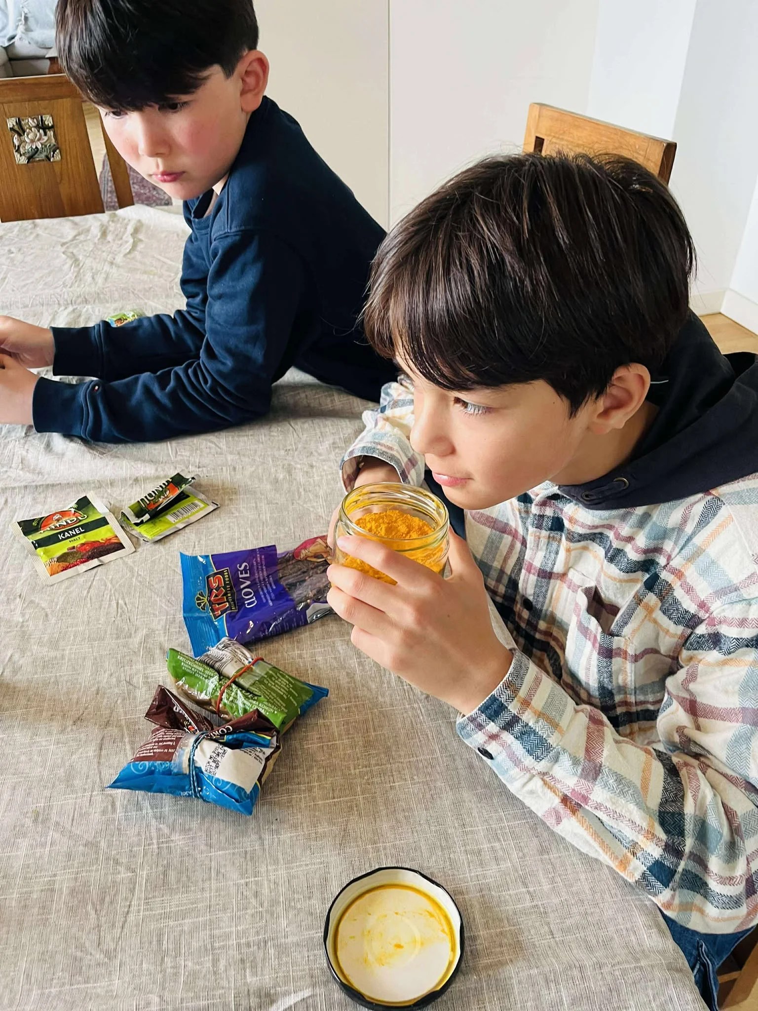 We were excited to discover that star anise smells just like Norwegian licorice candy🍬We also blended spices and adjusted the amounts to brew chai tea. It was a day of learning the names and smells of more than ten different spices.