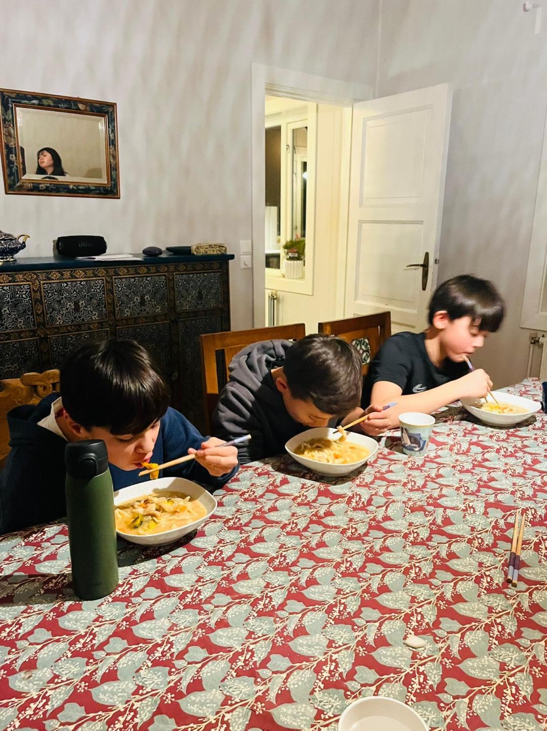 We used homemade miso prepared by Kumiko and made houtou. Also, we cooked matcha cookies that combine a Norwegian Christmas tradition with Japanese taste🤤お手製の味噌を使ってほうとうを作ったり、ノルウェーのレシピと日本の風味が合わさった抹茶クッキーを作ったりしました🤤
