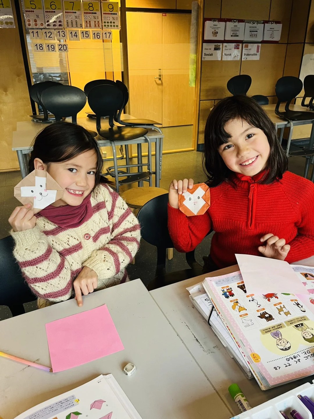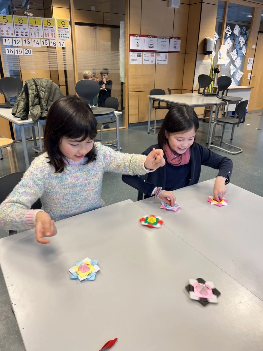 This time, we tried making a more difficult origami ! We followed the instructions and were able to complete it. 今回は少し難しい折り紙のコマに挑戦しました!作り方をよく聞きながら、自分の力で完成させることができました。