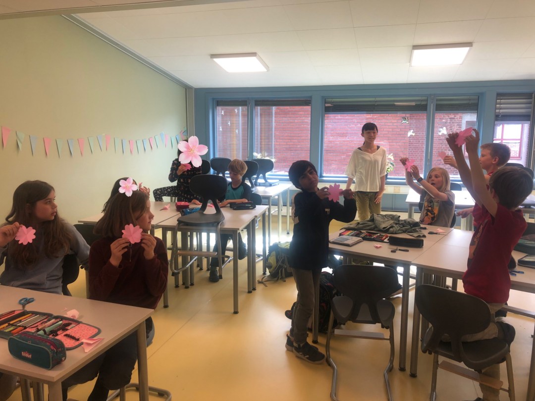After the long break due to COVID-19, our in-person courses for non-native children have finally started. At German-Norwegian school, we made SAKURA cherry blossom out of Origami 🌸